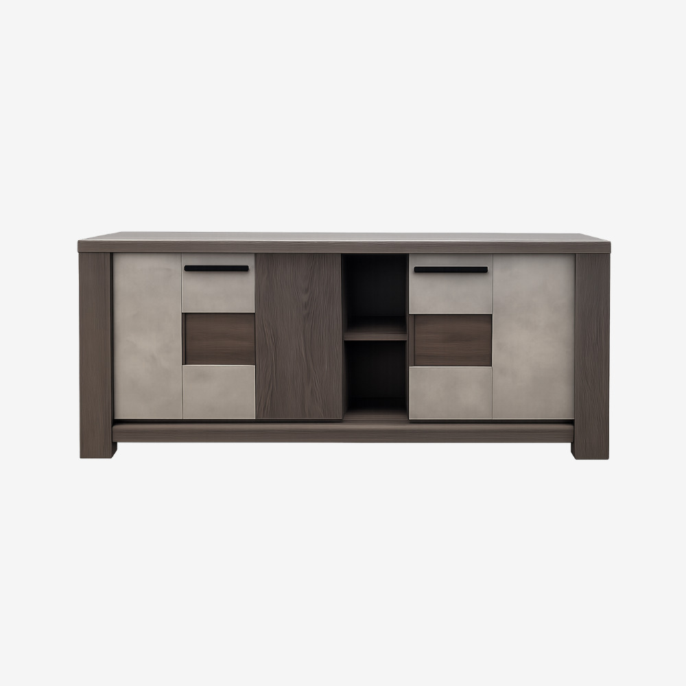 3 ante largo 172 profondo 45 alto 85. Ante effetto cemento grigio e legno grigio a rilievo. Struttura in essenza olmo grigio.