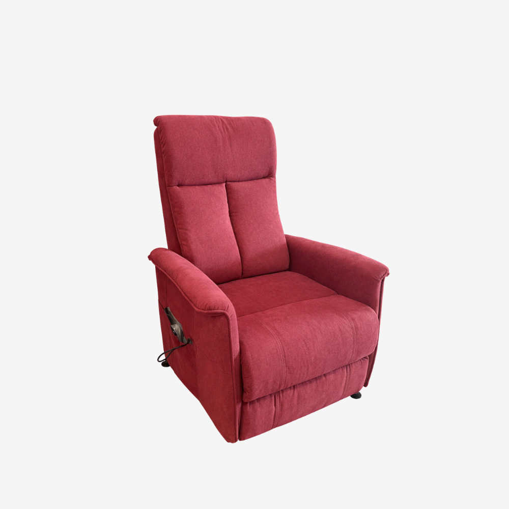 poltrona relax 2 motori, movimento lift, roller Kit e dispositivo medico. Prodotto italiano. Stoffa bordeaux idrorepellente.